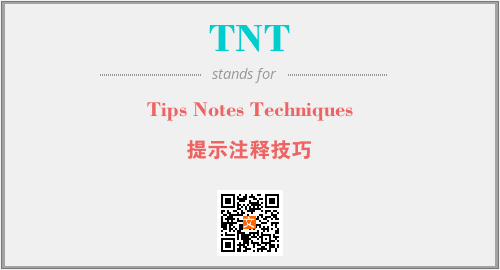 英文缩略词“TNT”经常作为“Tips Notes Techniques”的英文缩写来使用,中文表示:“提示注释技巧”。本文将详细介绍英文缩写词TNT所代表英文单词,其对应的中文拼音、详细解释以及在英语中的流行度。此外,还有关于缩略词TNT的分类、应用领域及相关应用示例等。