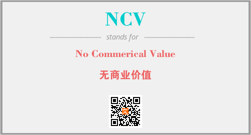 上述内容是“No Commerical Value”作为“NCV”的缩写,解释为“无商业价值”时的信息,以及英文缩略词NCV所代表的英文单词,其对应的中文拼音、详细解释以及在英文中的流行度和相关分类、应用领域及应用示例等。