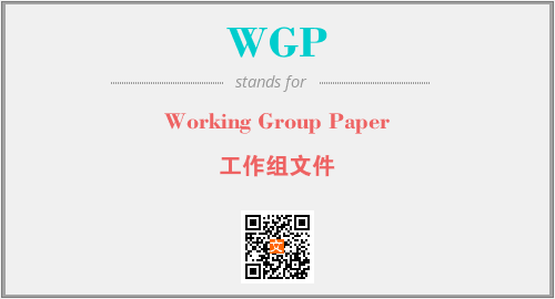 以上为Working Group Paper英文缩略词WGP的中文解释,以及该英文缩写在英语的流行度、分类和应用领域方面的信息。