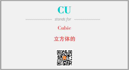 英文缩略词“CU”经常作为“Cubic”的英文缩写来使用,中文表示:“立方体的”。本文将详细介绍英文缩写词CU所代表英文单词,其对应的中文拼音、详细解释以及在英语中的流行度。此外,还有关于缩略词CU的分类、应用领域及相关应用示例等。