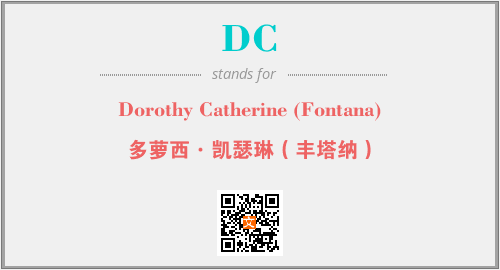 上述内容是“Dorothy Catherine (Fontana)”作为“DC”的缩写,解释为“多萝西·凯瑟琳(丰塔纳)”时的信息,以及英文缩略词DC所代表的英文单词,其对应的中文拼音、详细解释以及在英文中的流行度和相关分类、应用领域及应用示例等。