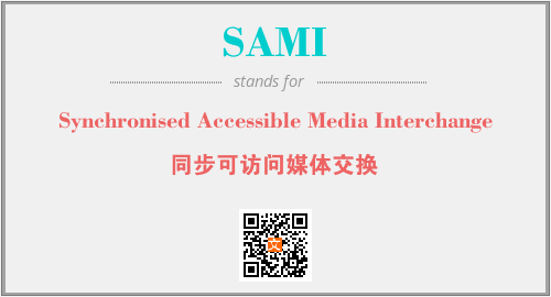 上述内容是“Synchronised Accessible Media Interchange”作为“SAMI”的缩写,解释为“同步可访问媒体交换”时的信息,以及英文缩略词SAMI所代表的英文单词,其对应的中文拼音、详细解释以及在英文中的流行度和相关分类、应用领域及应用示例等。