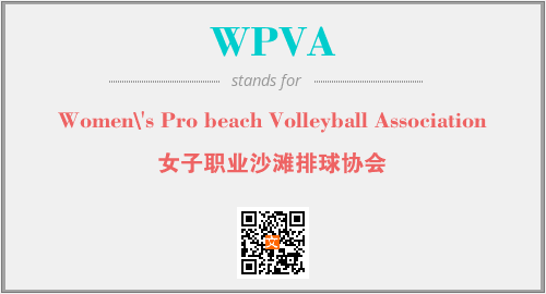 上述内容是“Women\'s Pro beach Volleyball Association”作为“WPVA”的缩写,解释为“女子职业沙滩排球协会”时的信息,以及英文缩略词WPVA所代表的英文单词,其对应的中文拼音、详细解释以及在英文中的流行度和相关分类、应用领域及应用示例等。