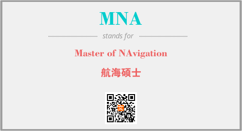 英文缩略词“MNA”经常作为“Master of NAvigation”的英文缩写来使用,中文表示:“航海硕士”。本文将详细介绍英文缩写词MNA所代表英文单词,其对应的中文拼音、详细解释以及在英语中的流行度。此外,还有关于缩略词MNA的分类、应用领域及相关应用示例等。