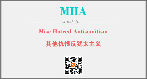 上述内容是“Misc Hatred Antisemitism”作为“MHA”的缩写,解释为“其他仇恨反犹太主义”时的信息,以及英文缩略词MHA所代表的英文单词,其对应的中文拼音、详细解释以及在英文中的流行度和相关分类、应用领域及应用示例等。