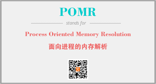 上述内容是“Process Oriented Memory Resolution”作为“POMR”的缩写,解释为“面向进程的内存解析”时的信息,以及英文缩略词POMR所代表的英文单词,其对应的中文拼音、详细解释以及在英文中的流行度和相关分类、应用领域及应用示例等。