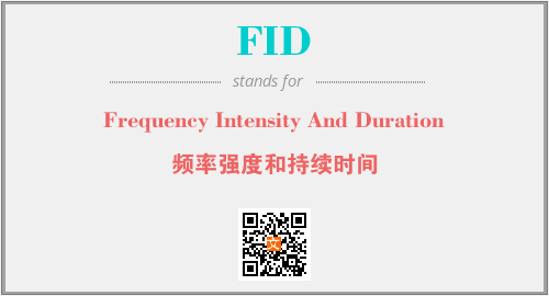 以上为Frequency Intensity And Duration英文缩略词FID的中文解释,以及该英文缩写在英语的流行度、分类和应用领域方面的信息。