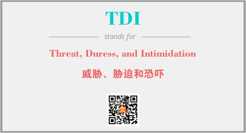 英文缩略词“TDI”经常作为“Threat, Duress, and Intimidation”的英文缩写来使用,中文表示:“威胁、胁迫和恐吓”。本文将详细介绍英文缩写词TDI所代表英文单词,其对应的中文拼音、详细解释以及在英语中的流行度。此外,还有关于缩略词TDI的分类、应用领域及相关应用示例等。