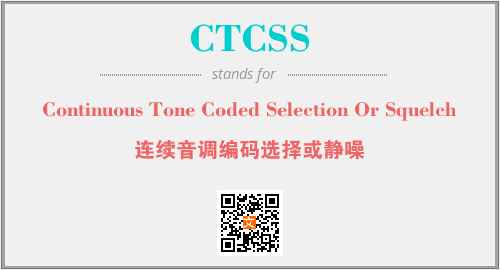 英文缩略词“CTCSS”经常作为“Continuous Tone Coded Selection Or Squelch”的英文缩写来使用,中文表示:“连续音调编码选择或静噪”。本文将详细介绍英文缩写词CTCSS所代表英文单词,其对应的中文拼音、详细解释以及在英语中的流行度。此外,还有关于缩略词CTCSS的分类、应用领域及相关应用示例等。