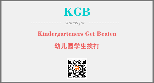英文缩略词“KGB”经常作为“Kindergarteners Get Beaten”的英文缩写来使用,中文表示:“幼儿园学生挨打”。本文将详细介绍英文缩写词KGB所代表英文单词,其对应的中文拼音、详细解释以及在英语中的流行度。此外,还有关于缩略词KGB的分类、应用领域及相关应用示例等。