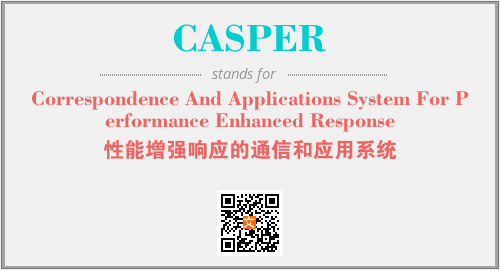 上述内容是“Correspondence And Applications System For Performance Enhanced Response”作为“CASPER”的缩写,解释为“性能增强响应的通信和应用系统”时的信息,以及英文缩略词CASPER所代表的英文单词,其对应的中文拼音、详细解释以及在英文中的流行度和相关分类、应用领域及应用示例等。