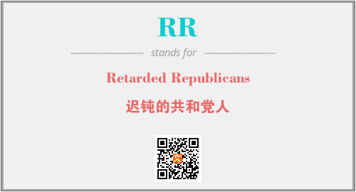 上述内容是“Retarded Republicans”作为“RR”的缩写,解释为“迟钝的共和党人”时的信息,以及英文缩略词RR所代表的英文单词,其对应的中文拼音、详细解释以及在英文中的流行度和相关分类、应用领域及应用示例等。