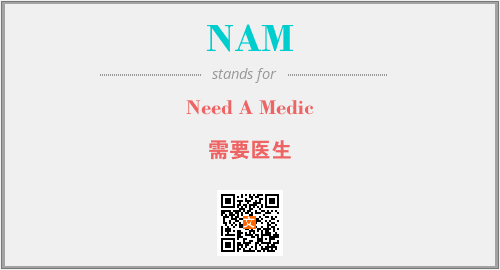 上述内容是“Need A Medic”作为“NAM”的缩写,解释为“需要医生”时的信息,以及英文缩略词NAM所代表的英文单词,其对应的中文拼音、详细解释以及在英文中的流行度和相关分类、应用领域及应用示例等。