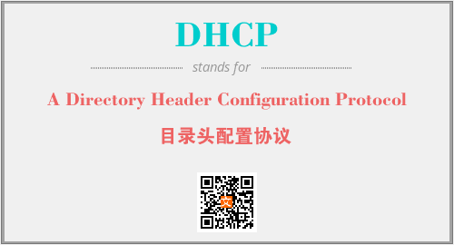 英文缩略词“DHCP”经常作为“A Directory Header Configuration Protocol”的英文缩写来使用,中文表示:“目录头配置协议”。本文将详细介绍英文缩写词DHCP所代表英文单词,其对应的中文拼音、详细解释以及在英语中的流行度。此外,还有关于缩略词DHCP的分类、应用领域及相关应用示例等。