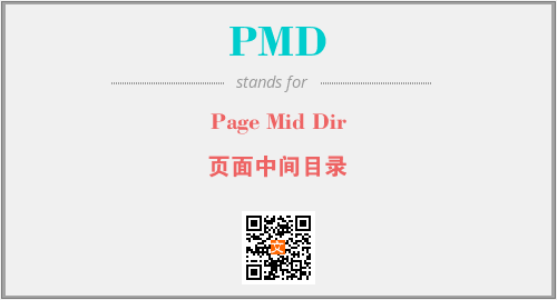 上述内容是“Page Mid Dir”作为“PMD”的缩写,解释为“页面中间目录”时的信息,以及英文缩略词PMD所代表的英文单词,其对应的中文拼音、详细解释以及在英文中的流行度和相关分类、应用领域及应用示例等。