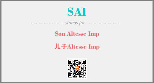 上述内容是“Son Altesse Imp”作为“SAI”的缩写,解释为“儿子Altesse Imp”时的信息,以及英文缩略词SAI所代表的英文单词,其对应的中文拼音、详细解释以及在英文中的流行度和相关分类、应用领域及应用示例等。