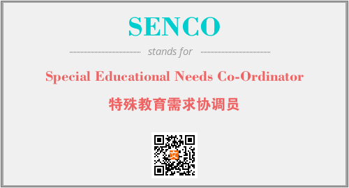 上述内容是“Special Educational Needs Co-Ordinator”作为“SENCO”的缩写,解释为“特殊教育需求协调员”时的信息,以及英文缩略词SENCO所代表的英文单词,其对应的中文拼音、详细解释以及在英文中的流行度和相关分类、应用领域及应用示例等。