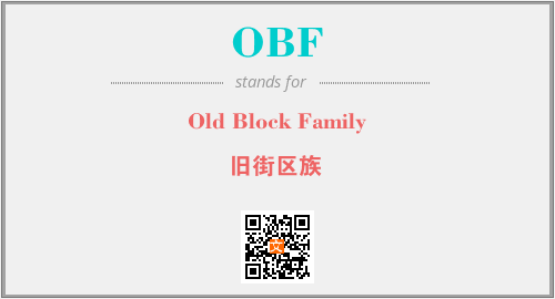 上述内容是“Old Block Family”作为“OBF”的缩写,解释为“旧街区族”时的信息,以及英文缩略词OBF所代表的英文单词,其对应的中文拼音、详细解释以及在英文中的流行度和相关分类、应用领域及应用示例等。