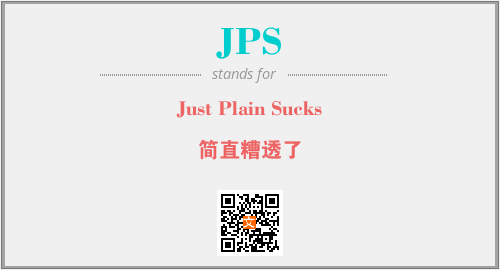 英文缩略词“JPS”经常作为“Just Plain Sucks”的英文缩写来使用,中文表示:“简直糟透了”。本文将详细介绍英文缩写词JPS所代表英文单词,其对应的中文拼音、详细解释以及在英语中的流行度。此外,还有关于缩略词JPS的分类、应用领域及相关应用示例等。