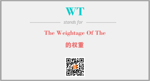 上述内容是“The Weightage Of The”作为“WT”的缩写,解释为“的权重”时的信息,以及英文缩略词WT所代表的英文单词,其对应的中文拼音、详细解释以及在英文中的流行度和相关分类、应用领域及应用示例等。