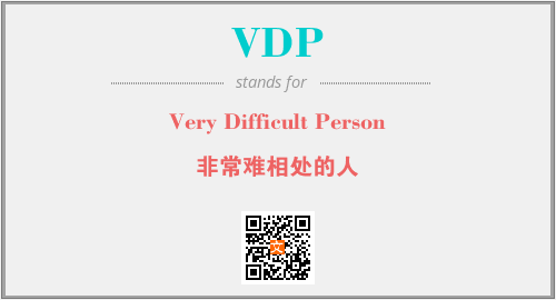 以上为Very Difficult Person英文缩略词VDP的中文解释,以及该英文缩写在英语的流行度、分类和应用领域方面的信息。