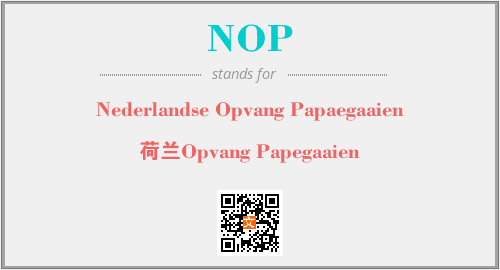 英文缩略词“NOP”经常作为“Nederlandse Opvang Papaegaaien”的英文缩写来使用,中文表示:“荷兰Opvang Papegaaien”。本文将详细介绍英文缩写词NOP所代表英文单词,其对应的中文拼音、详细解释以及在英语中的流行度。此外,还有关于缩略词NOP的分类、应用领域及相关应用示例等。