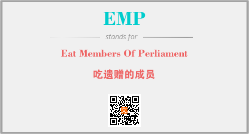 英文缩略词“EMP”经常作为“Eat Members Of Perliament”的英文缩写来使用,中文表示:“吃遗赠的成员”。本文将详细介绍英文缩写词EMP所代表英文单词,其对应的中文拼音、详细解释以及在英语中的流行度。此外,还有关于缩略词EMP的分类、应用领域及相关应用示例等。