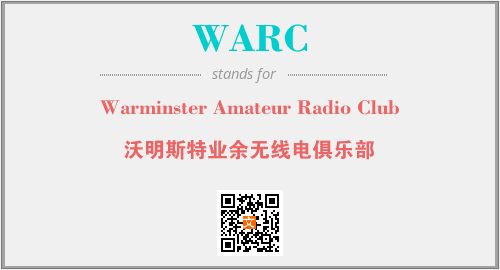 上述内容是“Warminster Amateur Radio Club”作为“WARC”的缩写,解释为“沃明斯特业余无线电俱乐部”时的信息,以及英文缩略词WARC所代表的英文单词,其对应的中文拼音、详细解释以及在英文中的流行度和相关分类、应用领域及应用示例等。