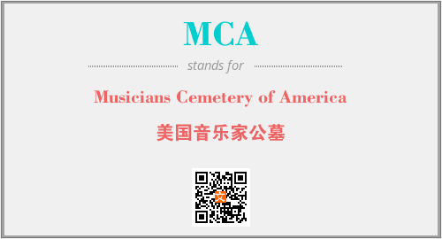 以上为Musicians Cemetery of America英文缩略词MCA的中文解释,以及该英文缩写在英语的流行度、分类和应用领域方面的信息。