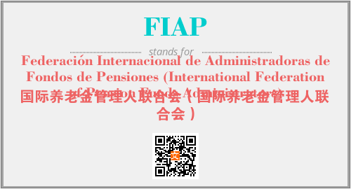 英文缩略词“FIAP”经常作为“Federación Internacional de Administradoras de Fondos de Pensiones (International Federation of Pension Funds Administrators)”的英文缩写来使用,中文表示:“国际养老金管理人联合会(国际养老金管理人联合会)”。本文将详细介绍英文缩写词FIAP所代表英文单词,其对应的中文拼音、详细解释以及在英语中的流行度。此外,还有关于缩略词FIAP的分类、应用领域及相关应用示例等。