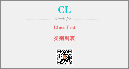 上述内容是“Class List”作为“CL”的缩写,解释为“类别列表”时的信息,以及英文缩略词CL所代表的英文单词,其对应的中文拼音、详细解释以及在英文中的流行度和相关分类、应用领域及应用示例等。
