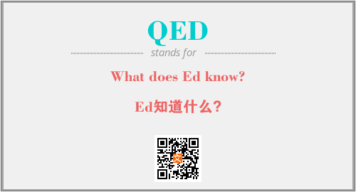 英文缩略词“QED”经常作为“What does Ed know?”的英文缩写来使用,中文表示:“Ed知道什么?”。本文将详细介绍英文缩写词QED所代表英文单词,其对应的中文拼音、详细解释以及在英语中的流行度。此外,还有关于缩略词QED的分类、应用领域及相关应用示例等。
