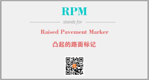英文缩略词“RPM”经常作为“Raised Pavement Marker”的英文缩写来使用,中文表示:“凸起的路面标记”。本文将详细介绍英文缩写词RPM所代表英文单词,其对应的中文拼音、详细解释以及在英语中的流行度。此外,还有关于缩略词RPM的分类、应用领域及相关应用示例等。