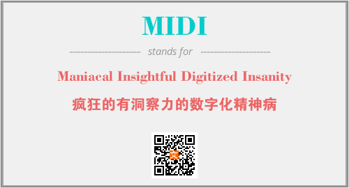 以上为Maniacal Insightful Digitized Insanity英文缩略词MIDI的中文解释,以及该英文缩写在英语的流行度、分类和应用领域方面的信息。