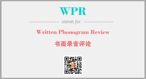 以上为Written Phonogram Review英文缩略词WPR的中文解释,以及该英文缩写在英语的流行度、分类和应用领域方面的信息。