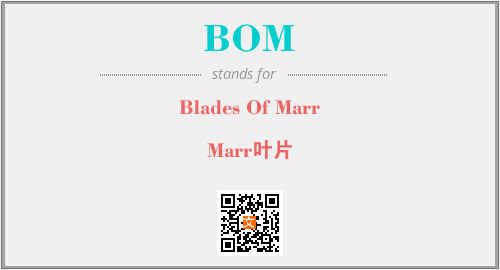 上述内容是“Blades Of Marr”作为“BOM”的缩写,解释为“Marr叶片”时的信息,以及英文缩略词BOM所代表的英文单词,其对应的中文拼音、详细解释以及在英文中的流行度和相关分类、应用领域及应用示例等。