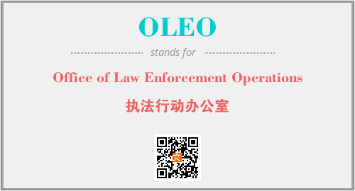 上述内容是“Office of Law Enforcement Operations”作为“OLEO”的缩写,解释为“执法行动办公室”时的信息,以及英文缩略词OLEO所代表的英文单词,其对应的中文拼音、详细解释以及在英文中的流行度和相关分类、应用领域及应用示例等。