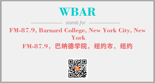 以上为FM-87.9, Barnard College, New York City, New York英文缩略词WBAR的中文解释,以及该英文缩写在英语的流行度、分类和应用领域方面的信息。