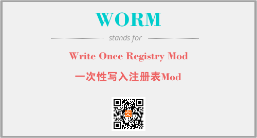 英文缩略词“WORM”经常作为“Write Once Registry Mod”的英文缩写来使用,中文表示:“一次性写入注册表Mod”。本文将详细介绍英文缩写词WORM所代表英文单词,其对应的中文拼音、详细解释以及在英语中的流行度。此外,还有关于缩略词WORM的分类、应用领域及相关应用示例等。