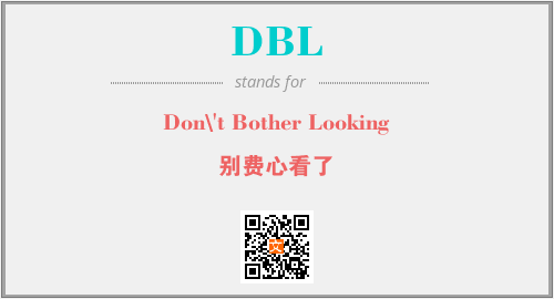 以上为Don\'t Bother Looking英文缩略词DBL的中文解释,以及该英文缩写在英语的流行度、分类和应用领域方面的信息。