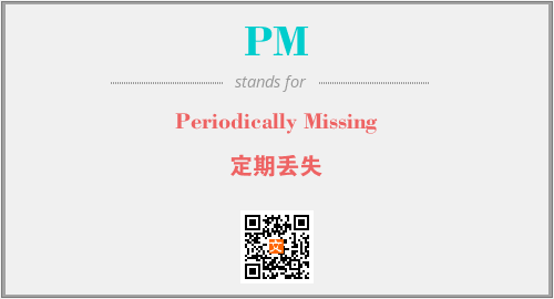 英文缩略词“PM”经常作为“Periodically Missing”的英文缩写来使用,中文表示:“定期丢失”。本文将详细介绍英文缩写词PM所代表英文单词,其对应的中文拼音、详细解释以及在英语中的流行度。此外,还有关于缩略词PM的分类、应用领域及相关应用示例等。