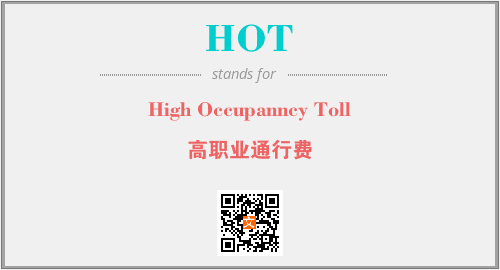 英文缩略词“HOT”经常作为“High Occupanncy Toll”的英文缩写来使用,中文表示:“高职业通行费”。本文将详细介绍英文缩写词HOT所代表英文单词,其对应的中文拼音、详细解释以及在英语中的流行度。此外,还有关于缩略词HOT的分类、应用领域及相关应用示例等。