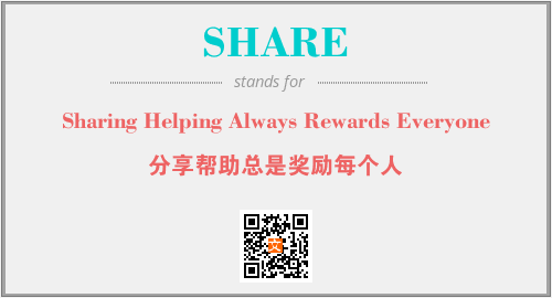 以上为Sharing Helping Always Rewards Everyone英文缩略词SHARE的中文解释,以及该英文缩写在英语的流行度、分类和应用领域方面的信息。