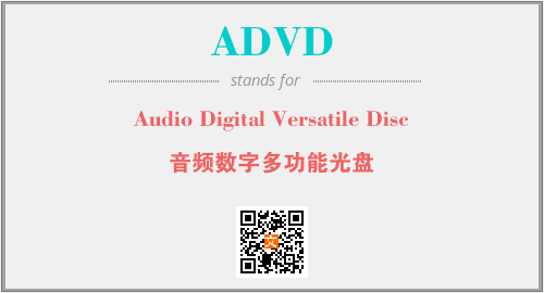 上述内容是“Audio Digital Versatile Disc”作为“ADVD”的缩写,解释为“音频数字多功能光盘”时的信息,以及英文缩略词ADVD所代表的英文单词,其对应的中文拼音、详细解释以及在英文中的流行度和相关分类、应用领域及应用示例等。
