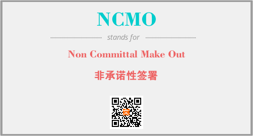 英文缩略词“NCMO”经常作为“Non Committal Make Out”的英文缩写来使用,中文表示:“非承诺性签署”。本文将详细介绍英文缩写词NCMO所代表英文单词,其对应的中文拼音、详细解释以及在英语中的流行度。此外,还有关于缩略词NCMO的分类、应用领域及相关应用示例等。