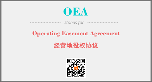 上述内容是“Operating Easement Agreement”作为“OEA”的缩写,解释为“经营地役权协议”时的信息,以及英文缩略词OEA所代表的英文单词,其对应的中文拼音、详细解释以及在英文中的流行度和相关分类、应用领域及应用示例等。