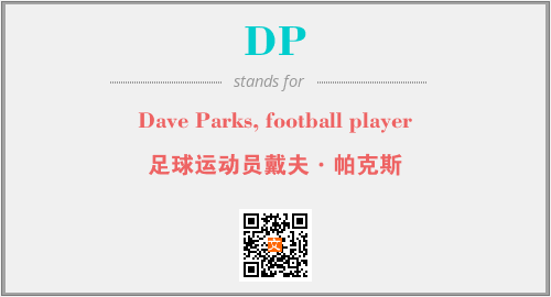 上述内容是“Dave Parks, football player”作为“DP”的缩写,解释为“足球运动员戴夫·帕克斯”时的信息,以及英文缩略词DP所代表的英文单词,其对应的中文拼音、详细解释以及在英文中的流行度和相关分类、应用领域及应用示例等。