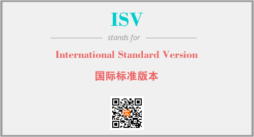 英文缩略词“ISV”经常作为“International Standard Version”的英文缩写来使用,中文表示:“国际标准版本”。本文将详细介绍英文缩写词ISV所代表英文单词,其对应的中文拼音、详细解释以及在英语中的流行度。此外,还有关于缩略词ISV的分类、应用领域及相关应用示例等。