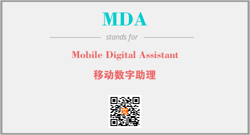 英文缩略词“MDA”经常作为“Mobile Digital Assistant”的英文缩写来使用,中文表示:“移动数字助理”。本文将详细介绍英文缩写词MDA所代表英文单词,其对应的中文拼音、详细解释以及在英语中的流行度。此外,还有关于缩略词MDA的分类、应用领域及相关应用示例等。