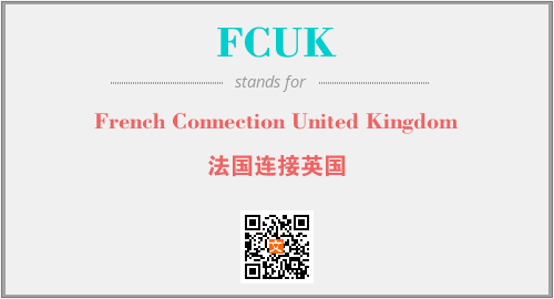 上述内容是“French Connection United Kingdom”作为“FCUK”的缩写,解释为“法国连接英国”时的信息,以及英文缩略词FCUK所代表的英文单词,其对应的中文拼音、详细解释以及在英文中的流行度和相关分类、应用领域及应用示例等。
